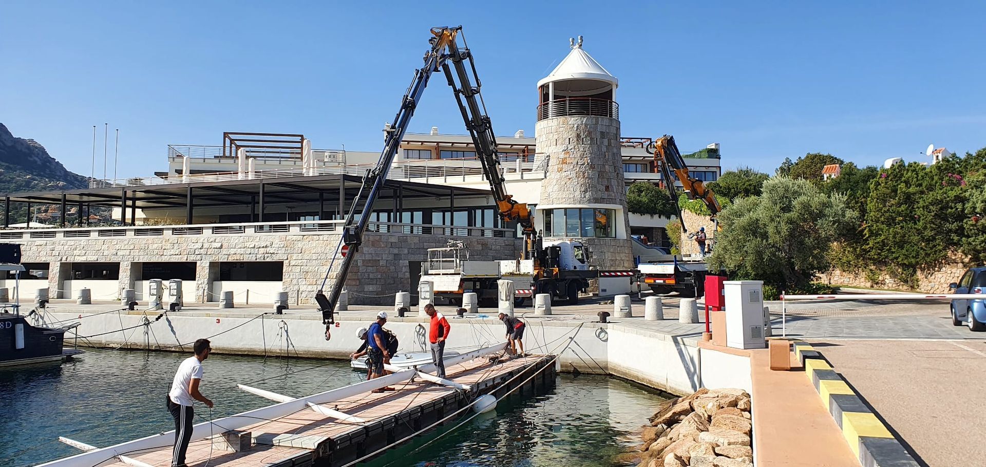 Inoltre, il parco mezzi disponibile consente di movimentare imbarcazioni, vasche o cabine, piscine